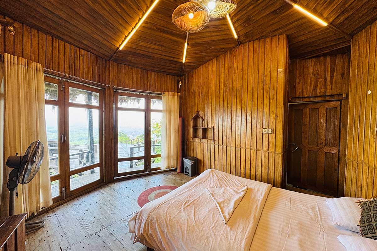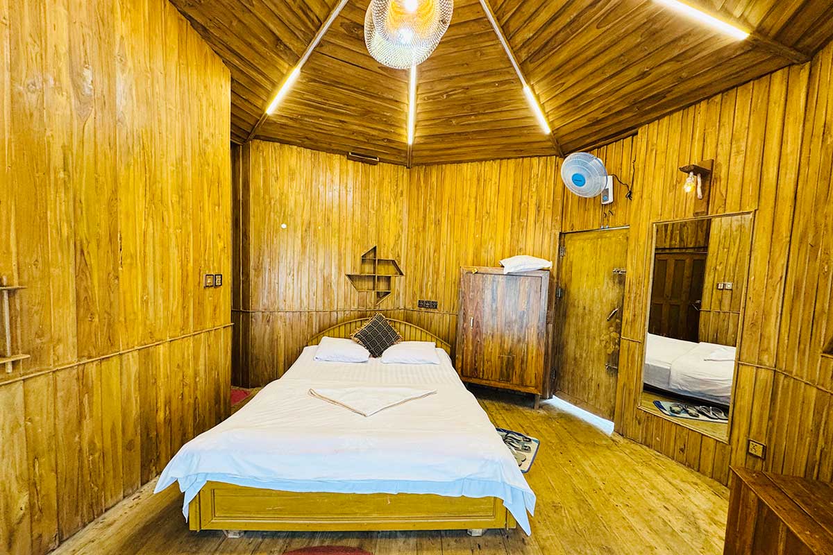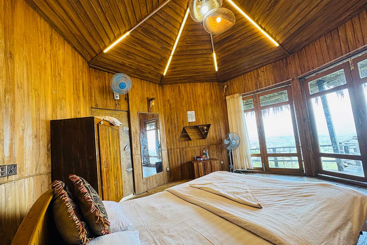 Tarasha cottage comprises 1 couple Bed, 1 Bedside Table, 1 stand fan, 1 infinity balcony. The room is furnished with an almirah and 1 large mirror. Our modern-fittings spacious bathroom is equipped with standard toiletries as well as all the amenities. A Complimentary Bottle of water, Breakfast, Morning tea, and access to the largest garden area are provided during your stay. You will get a full infinity hill view of Mizoram from inside and outside the cottage.